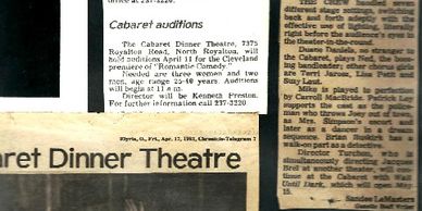After several years at the Cabaret Dinner Theatre, I was approached by John Kenley to become his assistant at Kenley Players (see tab). It was a step up into Equity Theatre and eventually led to Broadway, but I think fondly of my time at the Cabaret Dinner Theatre.